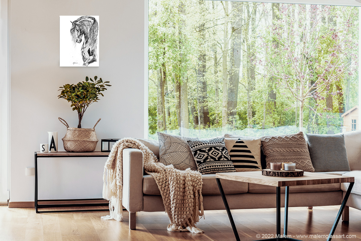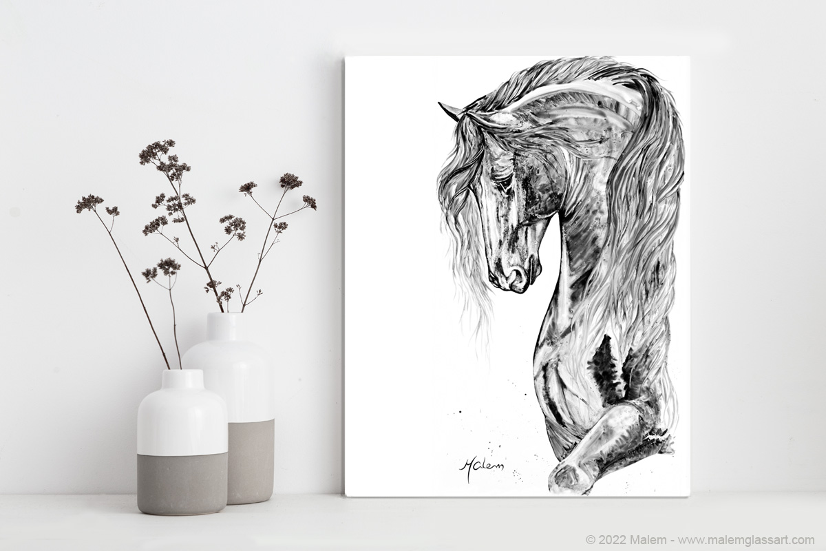 Imprimé le plus gros possible en respectant les proportions de l'oeuvre sur un papier art professionnel. une bordure blanche minimale de 0.5" (8.5x11) ou 1" (13 x 19) pour permettre les encadrements. Vous pouvez aussi simplement l'accrochée à votre endroit favori.